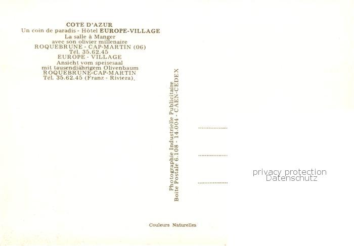13829530 Roquebrune-Cap-Martin 06 Alpes-Maritimes Un coin de paradis Hotel Europe Village La salle a Manger postalisch nicht gelaufen Erhaltung siehe scans [WerneD78] Wern Katcode 11170006206104