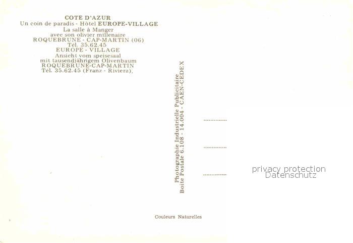 12915544 Roquebrune-Cap-Martin Hotel Europe-Village postalisch nicht gelaufen Erhaltung siehe scans [NatalD47] KatCode: 11170006206104