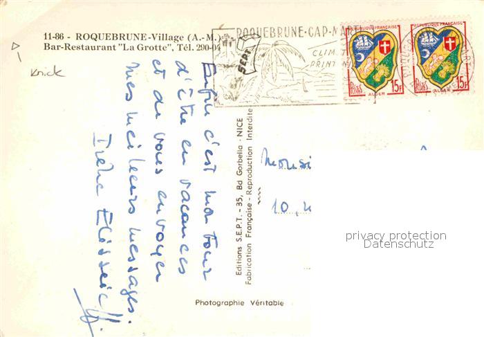 12712127 carte postale Roquebrune-Cap-Martin Restaurant La Grotte postalisch gelaufen Erhaltung siehe scans [AndreD76] KatCode: 11170006206104