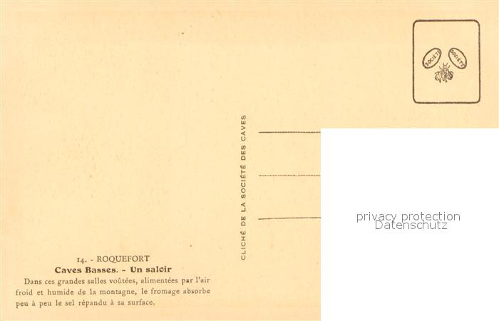 13630833 Roquefort-sur-Soulzon Caves Basses Un saloir Société des Caves postalisch nicht gelaufen Erhaltung siehe scans [FriedD77] Frie Katcode 11170012112203