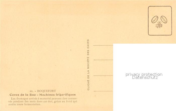 13630835 Roquefort-sur-Soulzon Caves de la Rue Machines frigorifiques Société des Caves postalisch nicht gelaufen Erhaltung siehe scans [FriedD77] Frie Katcode 11170012112203