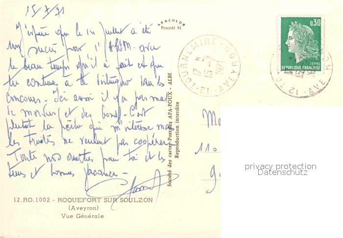 12787267 carte postale Roquefort-sur-Soulzon postalisch gelaufen Erhaltung siehe scans [LiesaD40] KatCode: 11170012112203