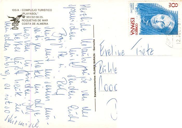 73899701 old postcard Roquetas de Mar ES Hotel Playasol postalisch gelaufen Erhaltung siehe scans [WerneD78] KatCode: 11510