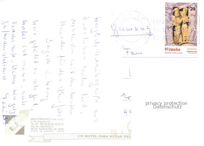 74005855 old postcard Roquetas de Mar ES Mediterraneo Park Hotel Pool postalisch gelaufen Erhaltung siehe scans [WerneD78] KatCode: 11510