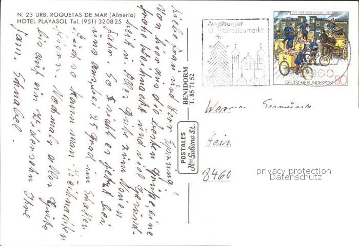old postcard Roquetas de Mar Hotel Playasol postalisch gelaufen Erhaltung siehe scans