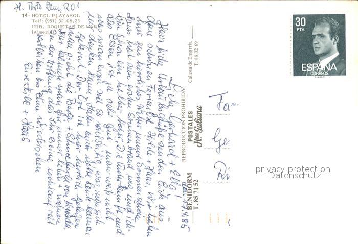 old postcard Roquetas de Mar Hotel Playasol postalisch gelaufen Erhaltung siehe scans