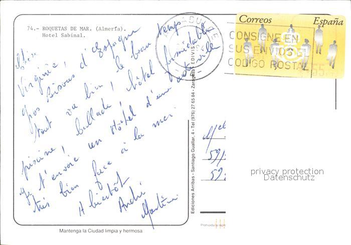 old postcard Roquetas de Mar Hotel Sabinal postalisch gelaufen Erhaltung siehe scans