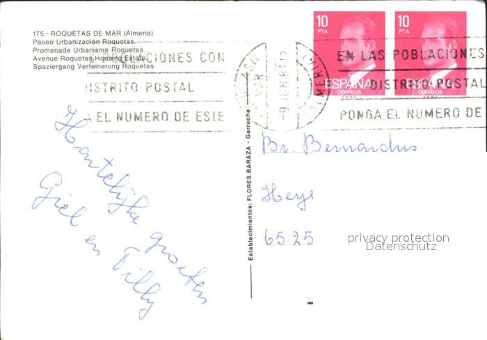 old postcard Roquetas de Mar Strassenpartie postalisch gelaufen Erhaltung siehe scans