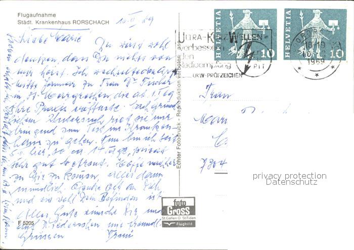 11630550 alte Postkarte Rorschach Bodensee Fliegeraufnahme Staedtisches Krankenhaus postalisch gelaufen Erhaltung siehe scans KatCode: 11470190560598