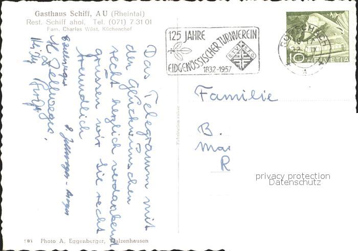 11630277 alte Postkarte Rorschach Bodensee Gasthaus Schiff Au Rheintal postalisch gelaufen Erhaltung siehe scans KatCode: 11470190560598