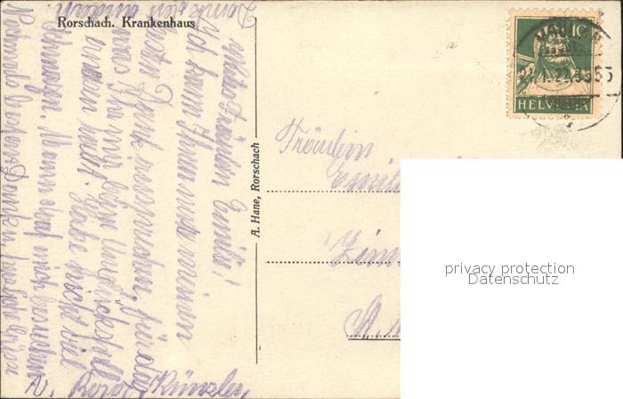 11960806 alte Postkarte Rorschach Bodensee Krankenhaus postalisch gelaufen Erhaltung siehe scans KatCode: 11470190560598