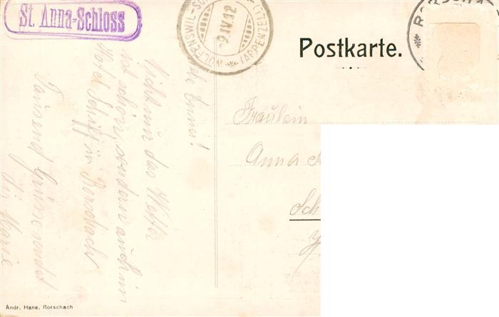 13915535 Rorschach Bodensee SG St. Anna Schloss Saal Jaegerstuebli Kapelle postalisch gelaufen Erhaltung siehe scans [FriedD77] alte Postkarte Frie Katcode 11470190560598