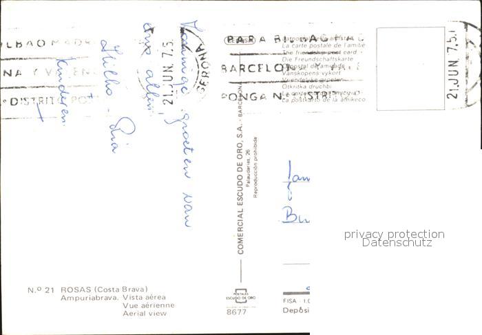 old postcard Rosas Costa Brava Cataluna Ampuriabrava Vista aerea postalisch gelaufen Erhaltung siehe scans [WerneD78]