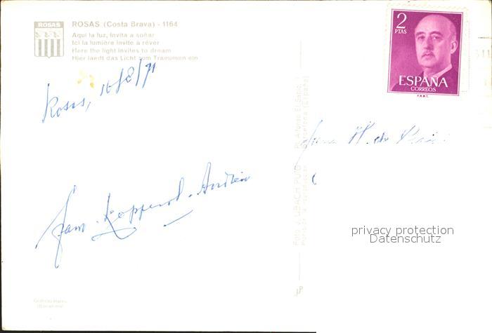 old postcard Rosas Costa Brava Cataluna Boote postalisch gelaufen Erhaltung siehe scans