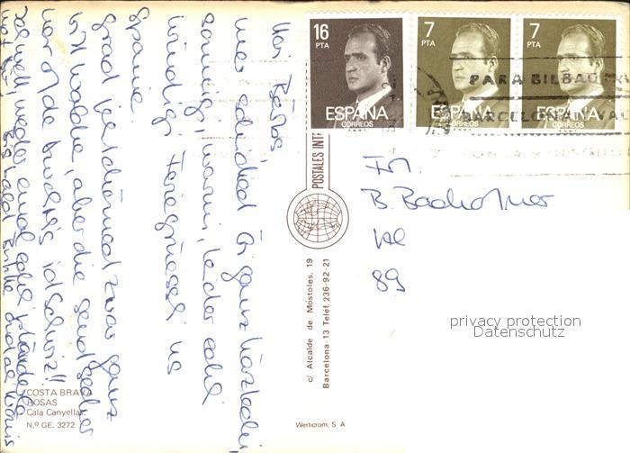 old postcard Rosas Costa Brava Cataluna Cala Canyellas postalisch gelaufen Erhaltung siehe scans [NatalD47 kv014box]