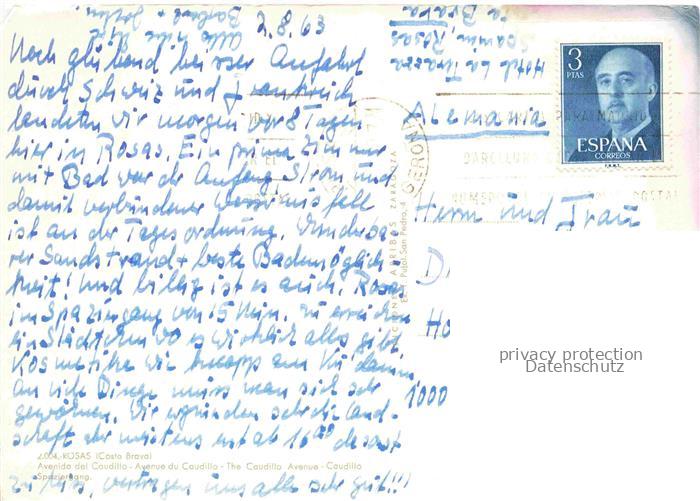 74055437 old postcard Rosas Costa Brava Cataluna ES Avenida del Caudillo postalisch gelaufen Erhaltung siehe scans [WerneD78] KatCode: 11510