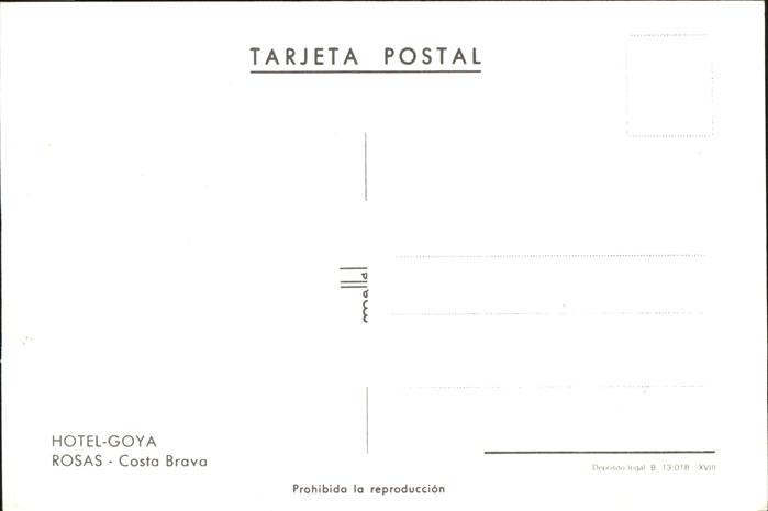 Rosas Costa Brava Cataluna Hotel Goya Swimming Pool postalisch nicht gelaufen Erhaltung siehe scans