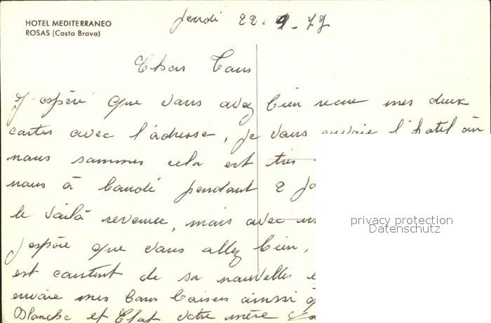 Rosas Costa Brava Cataluna Hotel Medierrano postalisch nicht gelaufen Erhaltung siehe scans