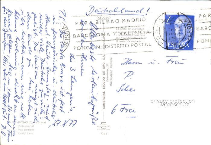 old postcard Rosas Costa Brava Cataluna Kleine Bucht postalisch gelaufen Erhaltung siehe scans [AndreD76]