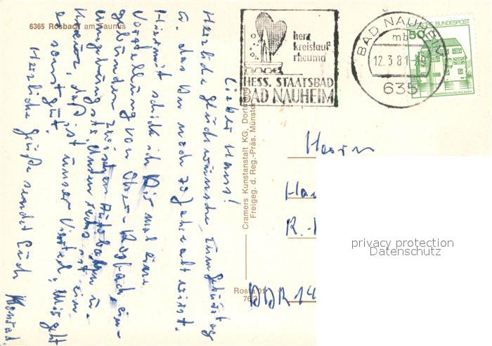 73648077 alte Postkarte Rosbach Hoehe Fliegeraufnahme postalisch gelaufen Erhaltung siehe scans [FriedD77] KatCode: 11110006440023