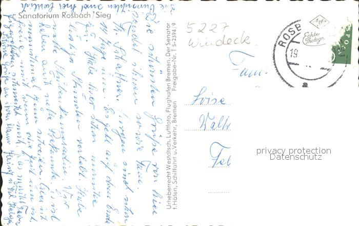 72261319 alte Postkarte Rosbach Sieg Fliegeraufnahme Sanatorium postalisch gelaufen Erhaltung siehe scans KatCode: 11110005382076