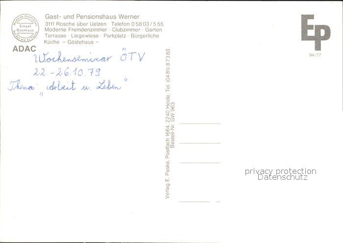 72071206 Rosche Uelzen Niedersachsen Pension Werner postalisch nicht gelaufen Erhaltung siehe scans KatCode: 11110003360018