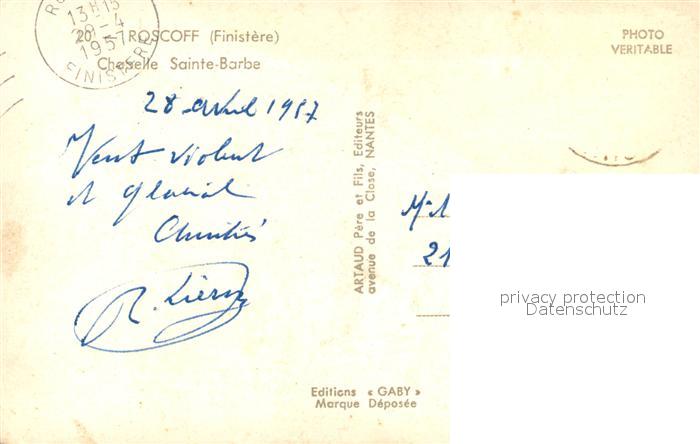 13580262 carte postale Roscoff Chapelle Sainte Barbe postalisch gelaufen Erhaltung siehe scans [WerneD78] KatCode: 11170029329239
