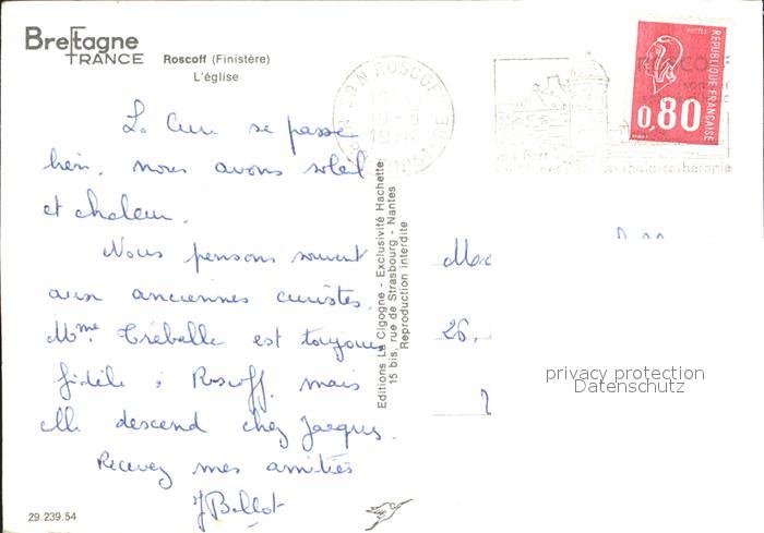 12232627 carte postale Roscoff Eglise postalisch gelaufen Erhaltung siehe scans KatCode: 11170029329239