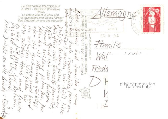 13090560 carte postale Roscoff Hafen Zentrum postalisch gelaufen Erhaltung siehe scans [NatalD47] KatCode: 11170029329239