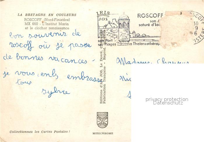 13580801 carte postale Roscoff Institut Marin et le clocher renaissance postalisch gelaufen Erhaltung siehe scans [FriedD77] KatCode: 11170029329239
