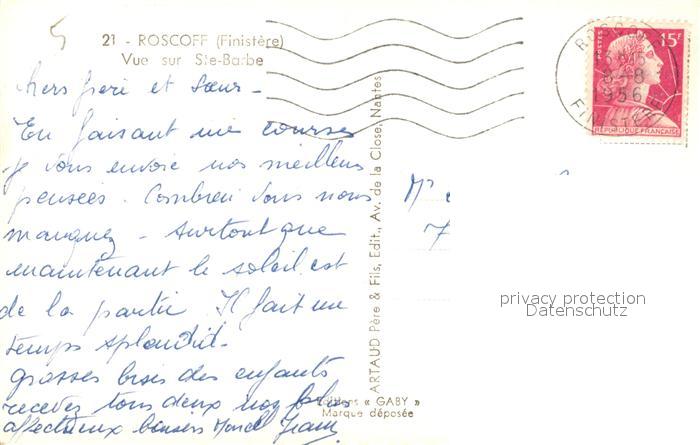 13541419 carte postale Roscoff Vue sur Sainte Barbe postalisch gelaufen Erhaltung siehe scans [FriedD77] KatCode: 11170029329239