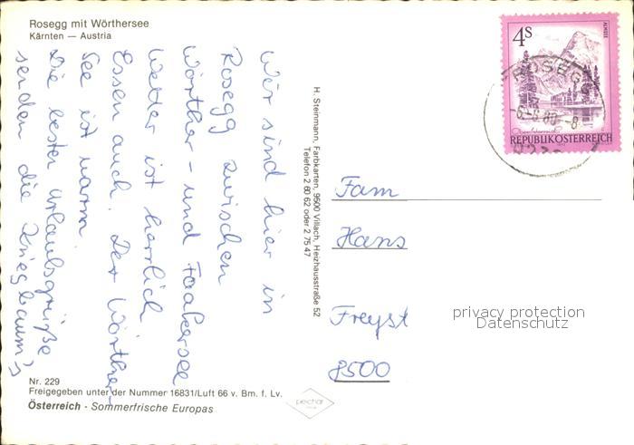 72287624 alte Postkarte Rosegg Fliegeraufnahme postalisch gelaufen Erhaltung siehe scans KatCode: 11390211020721