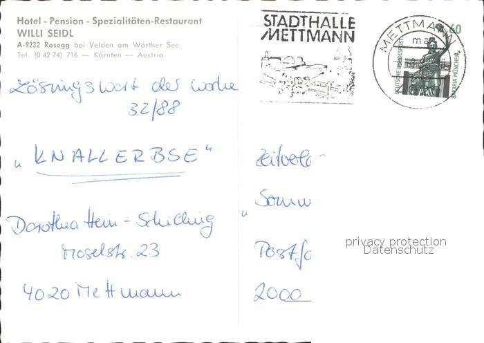 72381584 alte Postkarte Rosegg Hotel Pension W. Seidl postalisch gelaufen Erhaltung siehe scans KatCode: 11390211020721