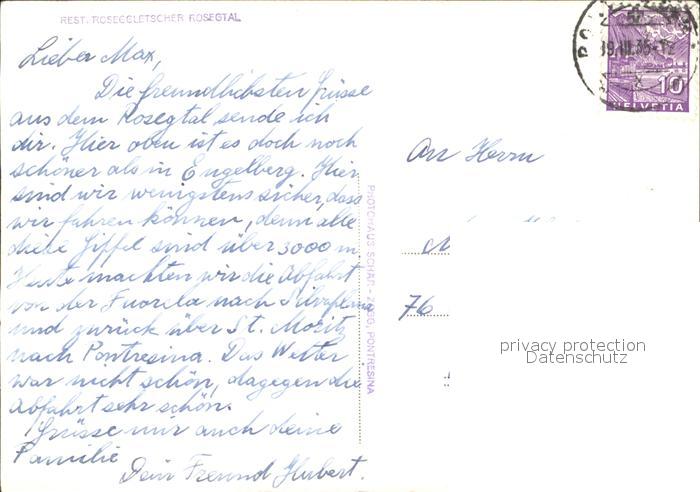 11837217 alte Postkarte Rosegtal Restaurant Roseggletscher Skispuren postalisch gelaufen Erhaltung siehe scans KatCode: 11470360710118