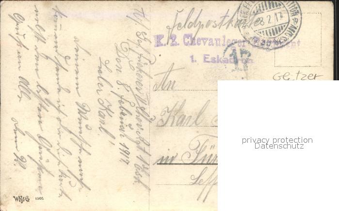 71685119 Rosen Veilchen Gruss Vogesen Stempel K.2. Chevauleger Regiment 1. Eskadron KatCode 22360000000400