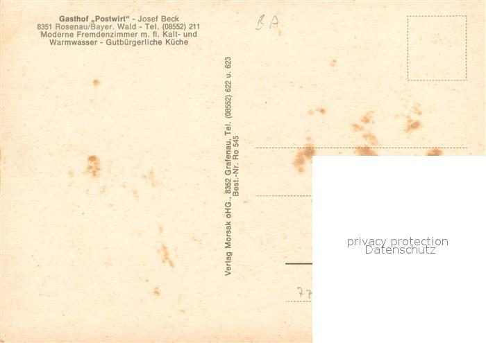 73748465 Rosenau Grafenau Gasthof Postwirt Panorama Gaestezimmer postalisch nicht gelaufen Erhaltung siehe scans [WerneD78] KatCode: 11110009272120
