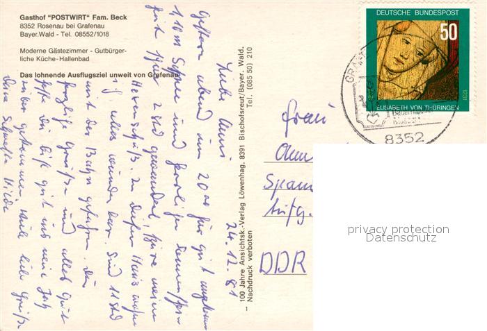 73641197 alte Postkarte Rosenau Grafenau Gasthof Postwirt Panorama postalisch gelaufen Erhaltung siehe scans [WerneD78] KatCode: 11110009272120