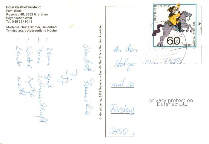73704619 alte Postkarte Rosenau Grafenau Hotel Gasthof Postwirt Terrasse Karikaturen Kuh Briefschwalbe Frosch Tennis postalisch gelaufen Erhaltung siehe scans [FriedD77] KatCode: 11110009272120