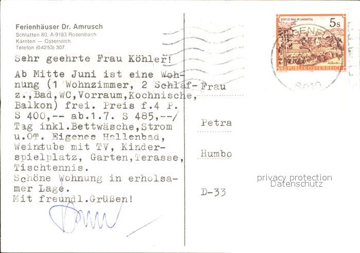 71899775 alte Postkarte Rosenbach Kaernten Ferienhaeuser Dr. Amrusch Hallenbad postalisch gelaufen Erhaltung siehe scans KatCode: 11390211020201