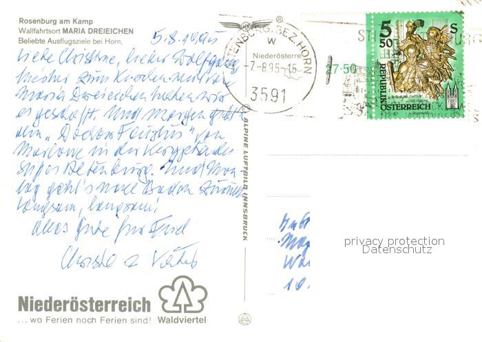 73234969 alte Postkarte Rosenburg-Kamp Wallfahrtskirche Maria Dreieichen postalisch gelaufen Erhaltung siehe scans [WerneD78] KatCode: 11390124031121