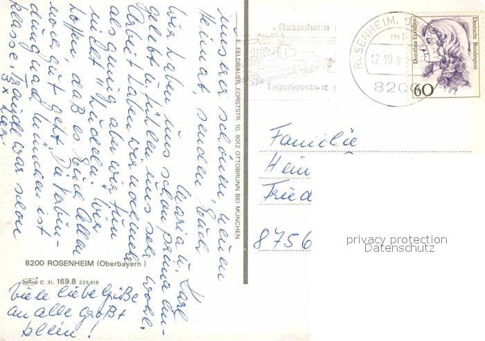 72721018 alte Postkarte Rosenheim Bayern Chiemsee Alpenpanorama Mittertor Innbruecke Max Josef Platz Ludwigsplatz Riedergarten postalisch gelaufen Erhaltung siehe scans [FriedD77] KatCode: 11110009163000