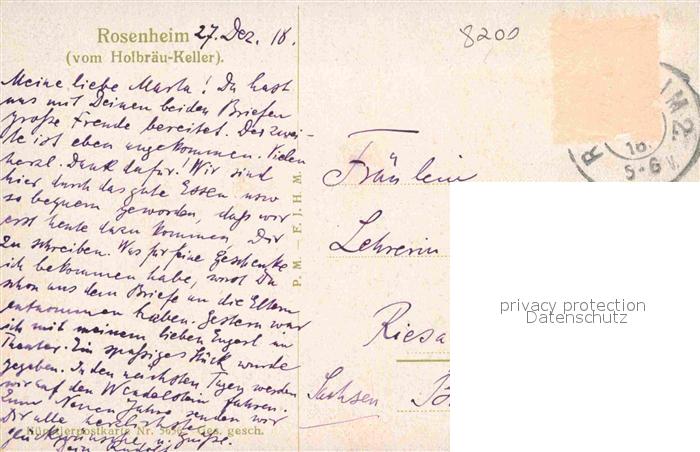 42620922 alte Postkarte Rosenheim Bayern Gesamtansicht Zeichnung postalisch gelaufen Erhaltung siehe scans [AndreD76] KatCode: 11110009163000