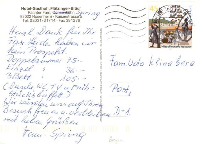 73905586 alte Postkarte Rosenheim Bayern Hotel Gasthof Floetzinger Braeu Gastraum postalisch gelaufen Erhaltung siehe scans [WerneD78] KatCode: 11110009163000