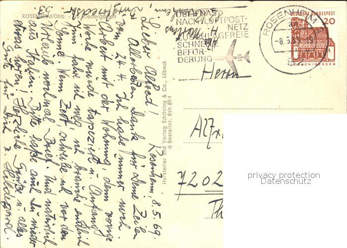 72590285 alte Postkarte Rosenheim Bayern Riedergarten postalisch gelaufen Erhaltung siehe scans [AntonD74] KatCode: 11110009163000