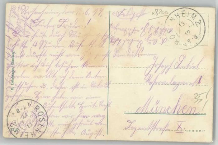 40211782 Rosenheim Bayern Rosenheim Oberbayern Muenchnerstrasse Feldpost x 1917 KatCode 11110009163000