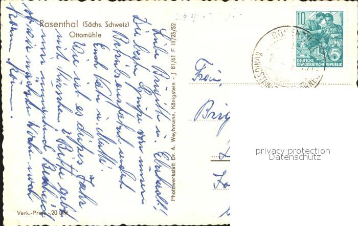 72518563 alte Postkarte Rosenthal-Bielatal Ottomuehle postalisch gelaufen Erhaltung siehe scans KatCode: 11110014287350