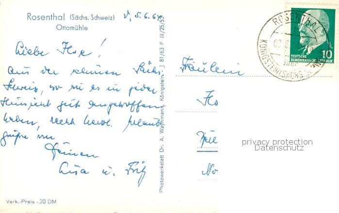 43495347 alte Postkarte Rosenthal-Bielatal Ottomuehle postalisch gelaufen Erhaltung siehe scans [WerneD78] KatCode: 11110014287350