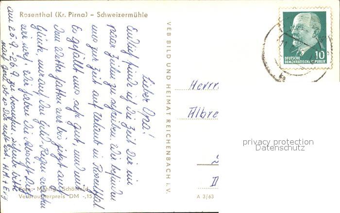 71919322 alte Postkarte Rosenthal-Bielatal Schweizermuehle postalisch gelaufen Erhaltung siehe scans KatCode: 11110014287350
