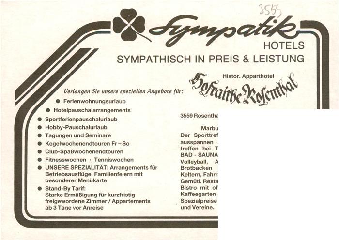 73935048 Rosenthal Hessen Clubhotel Feriendorf Hofraithe Rosenthal Gastraeume Sauna Hallenbad postalisch nicht gelaufen Werbekarte (keine Postkarte) Erhaltung siehe scans [FriedD77] KatCode: 11110006635017