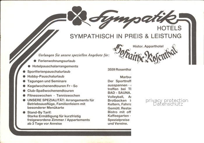 72111656 Rosenthal Hessen Feriendorf Hofraithe postalisch nicht gelaufen Werbekarte (keine Postkarte) Erhaltung siehe scans KatCode: 11110006635017